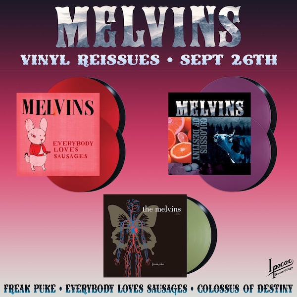 Ipecac Recordings announces the first-ever widely available vinyl releases of a trio of essential Melvins’ albums: Colossus of Destiny, Everybody Loves Sausages, and Freak Puke.