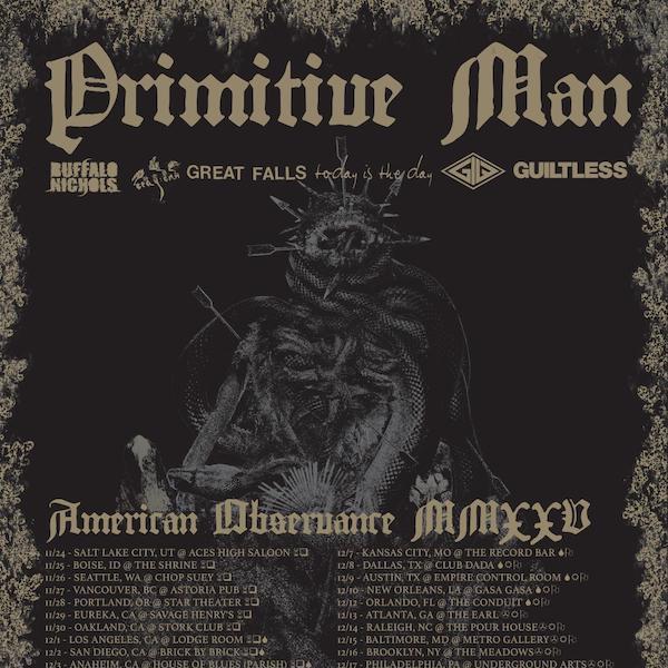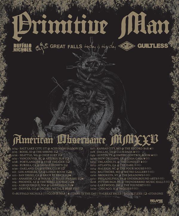 Today Is The Day has also been announced as one of the bands on Primitive Man’s upcoming American Observance Tour MMXXV, joining the tour from December 1st through 12th across the Western US. Tickets are on sale HERE. Additional dates surrounding the trek and additional tour dates for this year and early 2026 are to be expected.