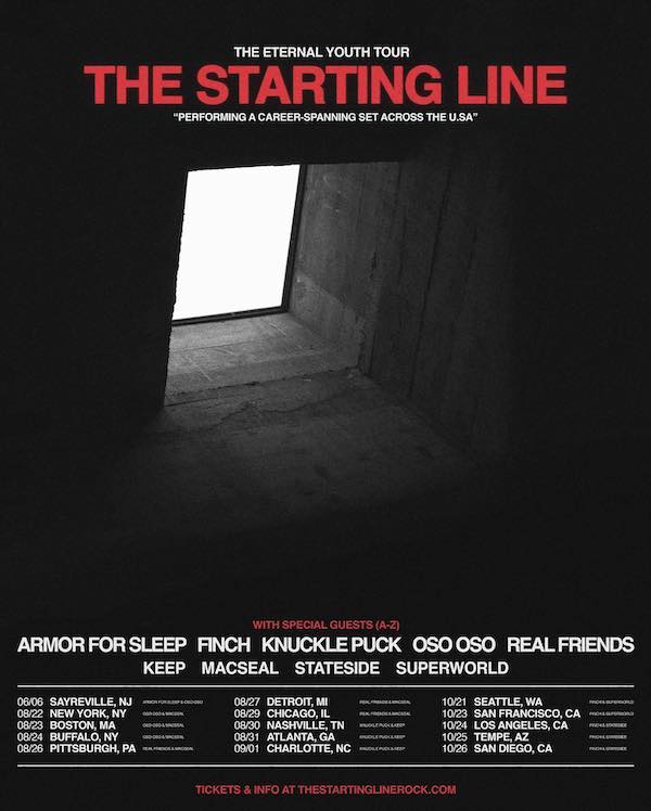 Eternal Youth arrives after a string of live appearances, including their SOLD OUT annual hometown holiday gathering Reconnect, as well as performances at When We Were Young Festival, Slam Dunk, and Letās Go Fest. Their continued ability to sell out venues nationwide shows what longtime fans have always known: The Starting Line never left the hearts of the scene they helped build. In support of the record, the band will embark on the Eternal Youth Tour, their first full-scale headlining run in years, with dates already selling out across the country.