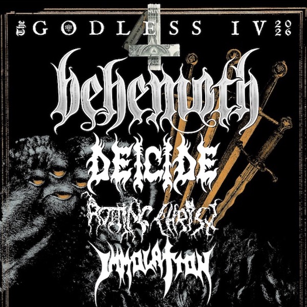 Kings of extreme metal Behemoth will return to lay waste to American venues this spring. The band has announced its North American Spring 2026 headline “The Godless IV Tour,” kicking off April 14 in San Diego and running through May 21 in Los Angeles. It includes Welcome to Rockville and Sonic Temple festival appearances.This trek marks the band’s first tour of North America in support of the critically acclaimed new opus The Shit Ov God, out now via Nuclear Blast. Joining Behemoth for this run is a trio of fellow extremists — Deicide, Rotting Christ, and Immolation. Tickets are on sale, get yours here.
