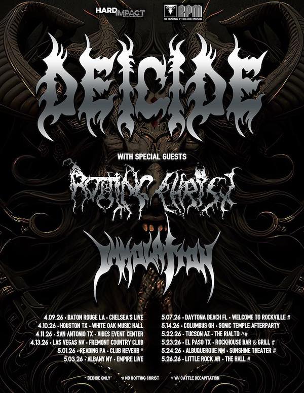 Deicide 2026 North American Tour Dates w/ Rotting Christ, Cattle Decapitation, and Immolation: