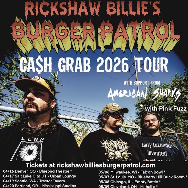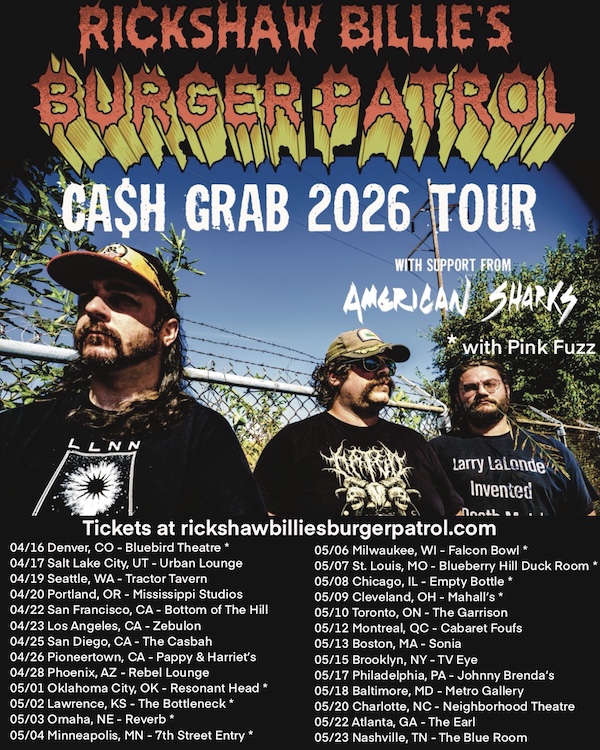 Rickshaw Billie’s Burger Patrol US 2026 Spring Tour Dates w/ American Sharks, and Pink Fuzz: