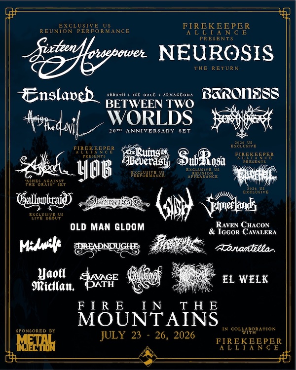 “I cannot think of a more appropriate environment for us to return to the stage,” comments Steve Von Till, who also serves on the board of Firekeeper Alliance. “Last year’s Fire In The Mountains festival was the most profound music event I have ever been a part of. The weekend took on a healing, cathartic ceremonial nature that is difficult to put into words. Using emotionally heavy music to build community and collectively stare darkness in the eye is something we have always believed in, but using it to directly address the heartbreaking reality of suicide, grief, loss, and trauma is taking it to another level.”