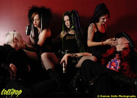 Rockstar drinks and girlie tees, plus a couple Lollipop tees, plus five hotties, and you got yourself a photoshoot. Way too many cool items provided by models to list. Wicked Mina: www.myspace.com/wickedminamodel | Elle: www.myspace.com/elle__ | Amara: www.myspace.com/mipainizurart | Dante Drakul: www.myspace.com/DanteDrakul | Angel: www.myspace.com/angelicdiscord