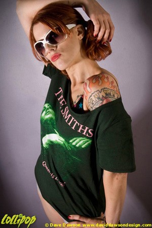 Soma Snakeoil shows off The Smiths' The Queen is Dead shirt reconstructed off-the-shoulder ballerina-style $25 www.victoriouspirate.com | Rebel Girlz Plaid O Ring Bracelet $8 www.rebelgirlz.com