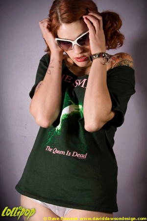 Soma Snakeoil shows off The Smiths' The Queen is Dead shirt reconstructed off-the-shoulder ballerina-style $25 www.victoriouspirate.com | Rebel Girlz Plaid O Ring Bracelet $8 www.rebelgirlz.com