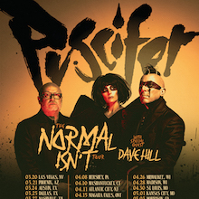 Puscifer, featuring Maynard James Keenan, Mat Mitchell, and Carina Round, releases Normal Isn’t, their first new album in over five years, plus Spring 2026 tour dates.