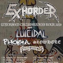 New Orleans thrash metal legends Exhorder kick off their US headlining tour. Support by Luicidal, Ringworm, Phobia, and Slowhole on select dates.